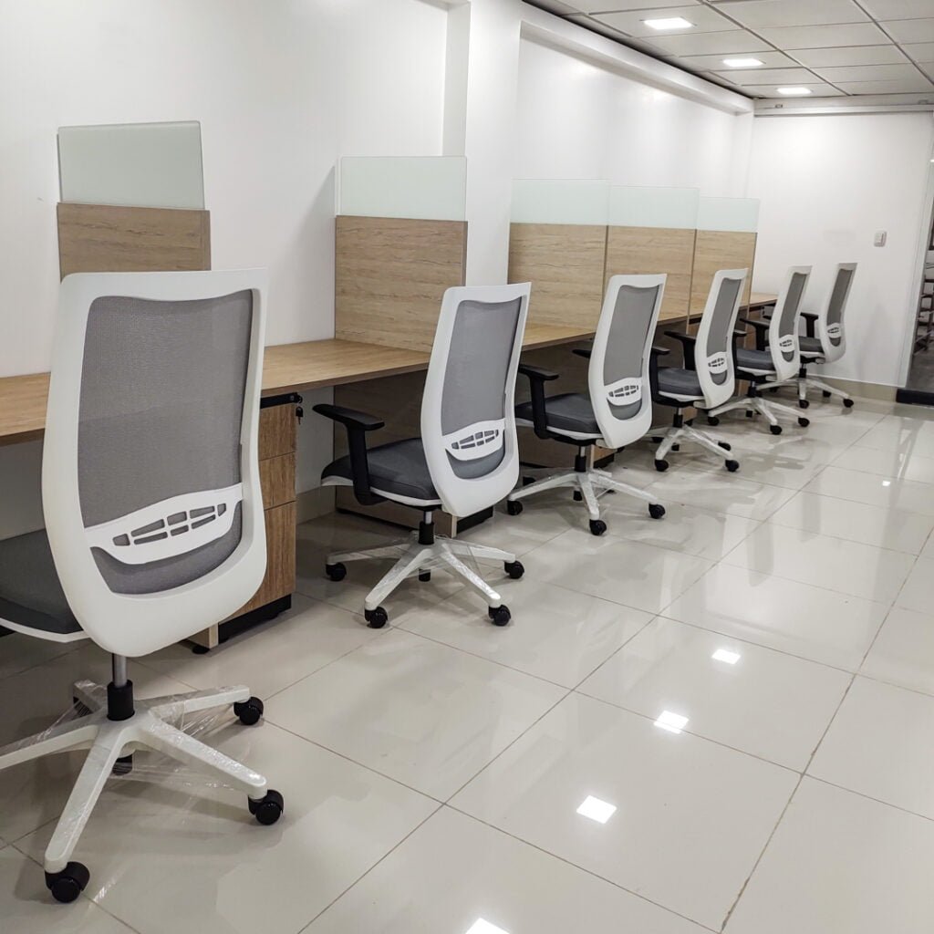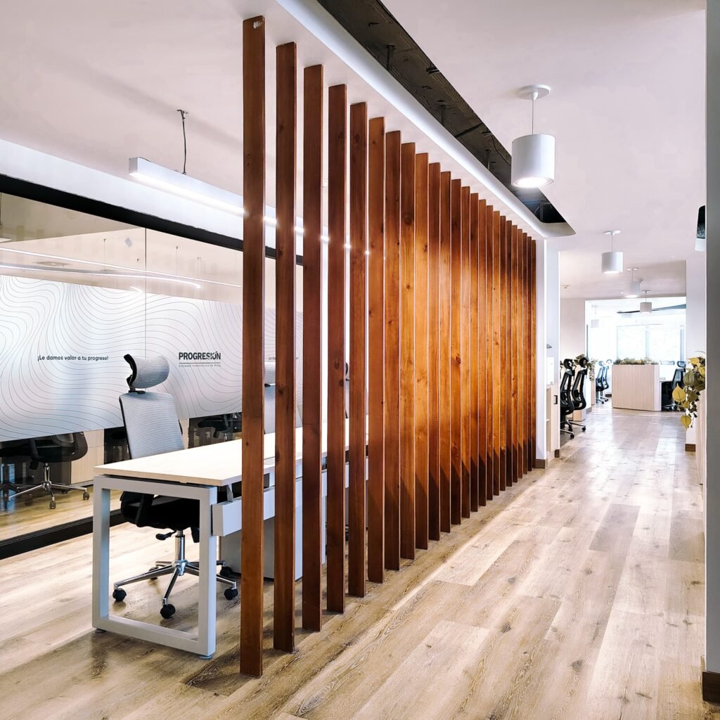 Para Ordoñez Arquitectura - PROGRESIÓN realizamos el amoblamiento de las oficinas directivas, ejecutivas y operativas. Suministramos puestos de trabajo con conectividad y archivadores individuales, optimizando la funcionalidad del espacio. En las áreas directivas diseñamos escritorios que combinan colores sólidos y tonos madera claros, creando un ambiente elegante y profesional. Complementamos el diseño con materas decorativas que aportan armonía y bienestar al entorno laboral.